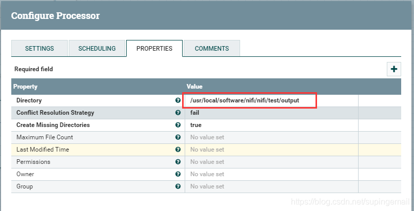 b. 从工具栏中拖入一个Processor,在弹出面板中搜索PutFIle,然后设置PutFile的属性.