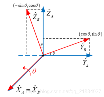 ,将这三个单位矢量按照顺序排成一个3×3的矩阵,称该矩阵为旋转矩阵,记作: