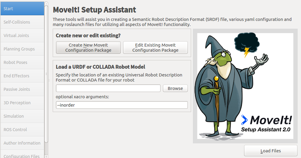 rosrun moveit_setup_assistant moveit_setup_assistant