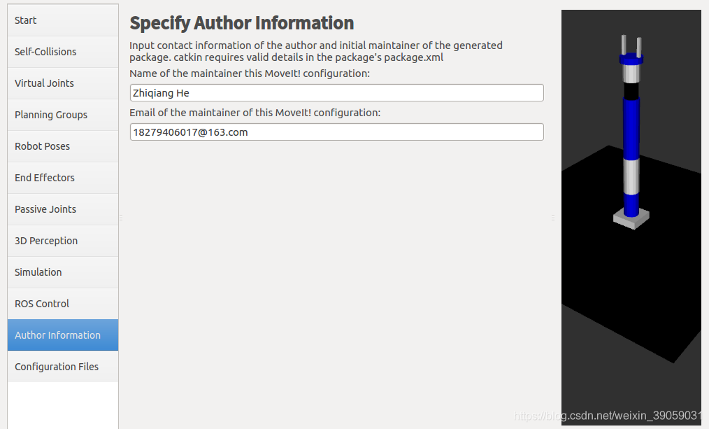 我们已经创建了一个机械臂,接下来我们需要创建配置文件,这个配置文件的生成我们需要使用moveit里面的工具,Moveit Setup Assistant。可以帮助我们通过可视化的形式完成一系列的配置工作,这个工具可以通过以下命令启动。