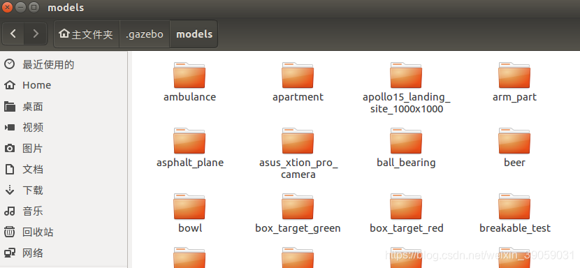 2.将下载好的文件放入./gazebo/model目录下面,ctrl+h可以查看隐含文件夹: