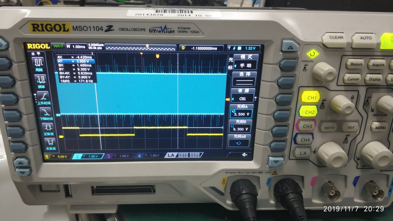 加载好设备树之后,发现示波器上的高电平变成了低电平,说明设备树加载成功。 使用如下主程序测试motor_direction.cpp: