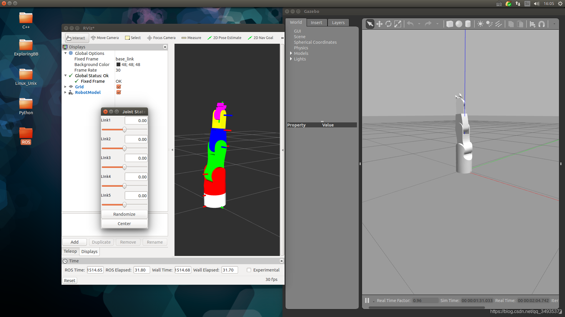###### gazebo配合rviz 仿真机械臂 #######