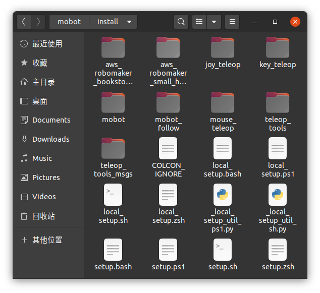 如上文件夹下都是使用apt安装在系统目录下的软件包。 如果自定义机器人软件程序,通常在home文件夹下,新建诸如ros_ws/src文件夹,然后编写代码,编译生成可执行文件使用。 以博客中之前讲解过的mobot为例,此案例正在dashing/eloquent/foxy进行测试。 如果需要编译工区源码,需要使用如下命令安装所需功能包: